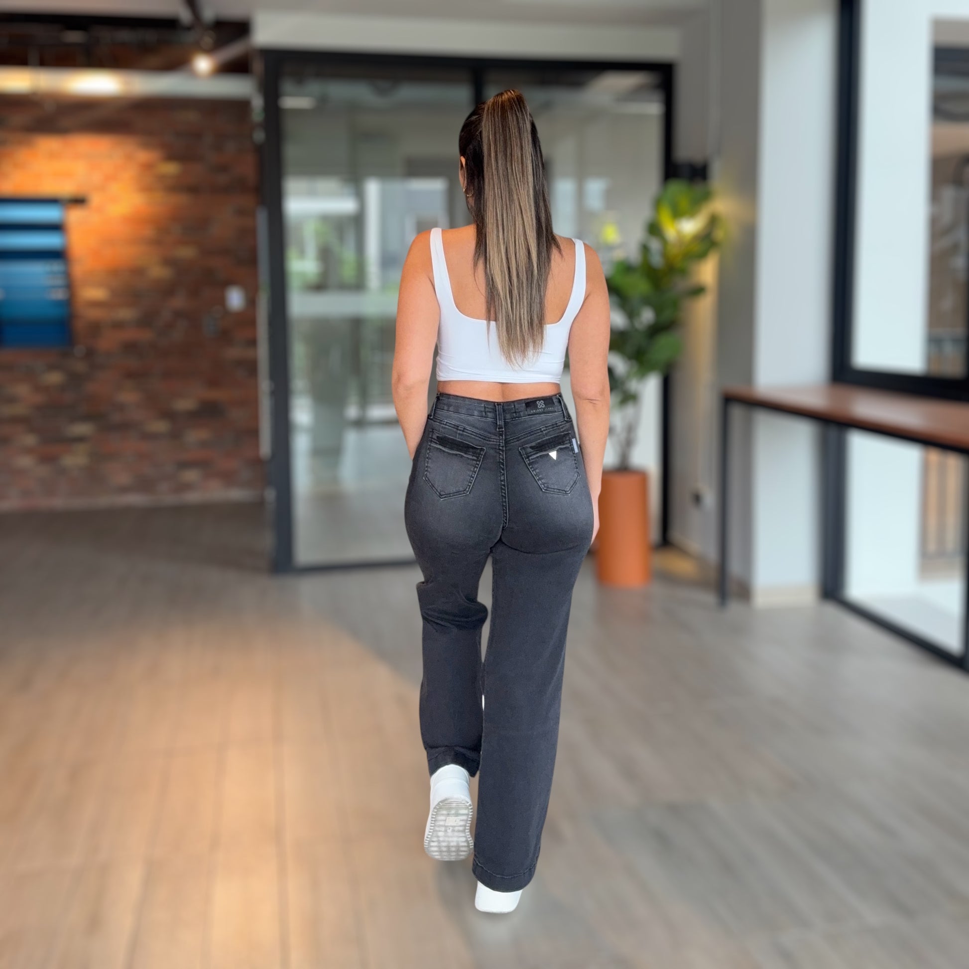 - Color negro, desgaste en el trasero.