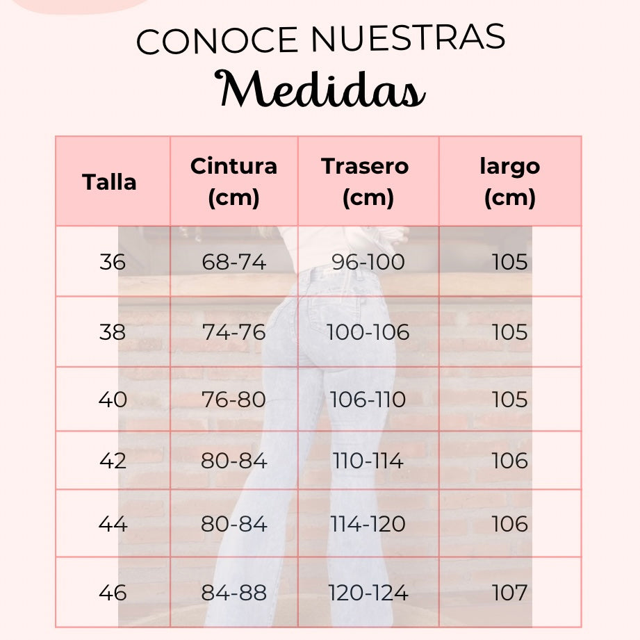 - Importante: tallaje ajustado, si no te gustan los jeans tan apretados te recomendamos una talla más, y si estás entre dos tallas elige la más grande.